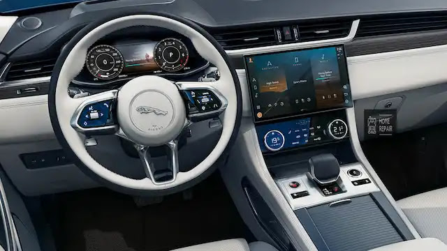 تضمنت مقصورة جاكوار 2021 سيارة suv علي مواد ناعمة الملمس في الابواب من الداخل ومساند الزراعين وناقل الحركة الاوتوماتيكى وبعض الاجزاء الداخلية